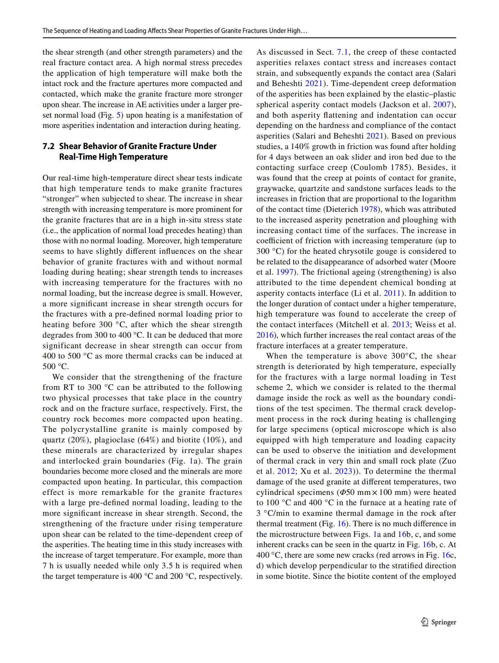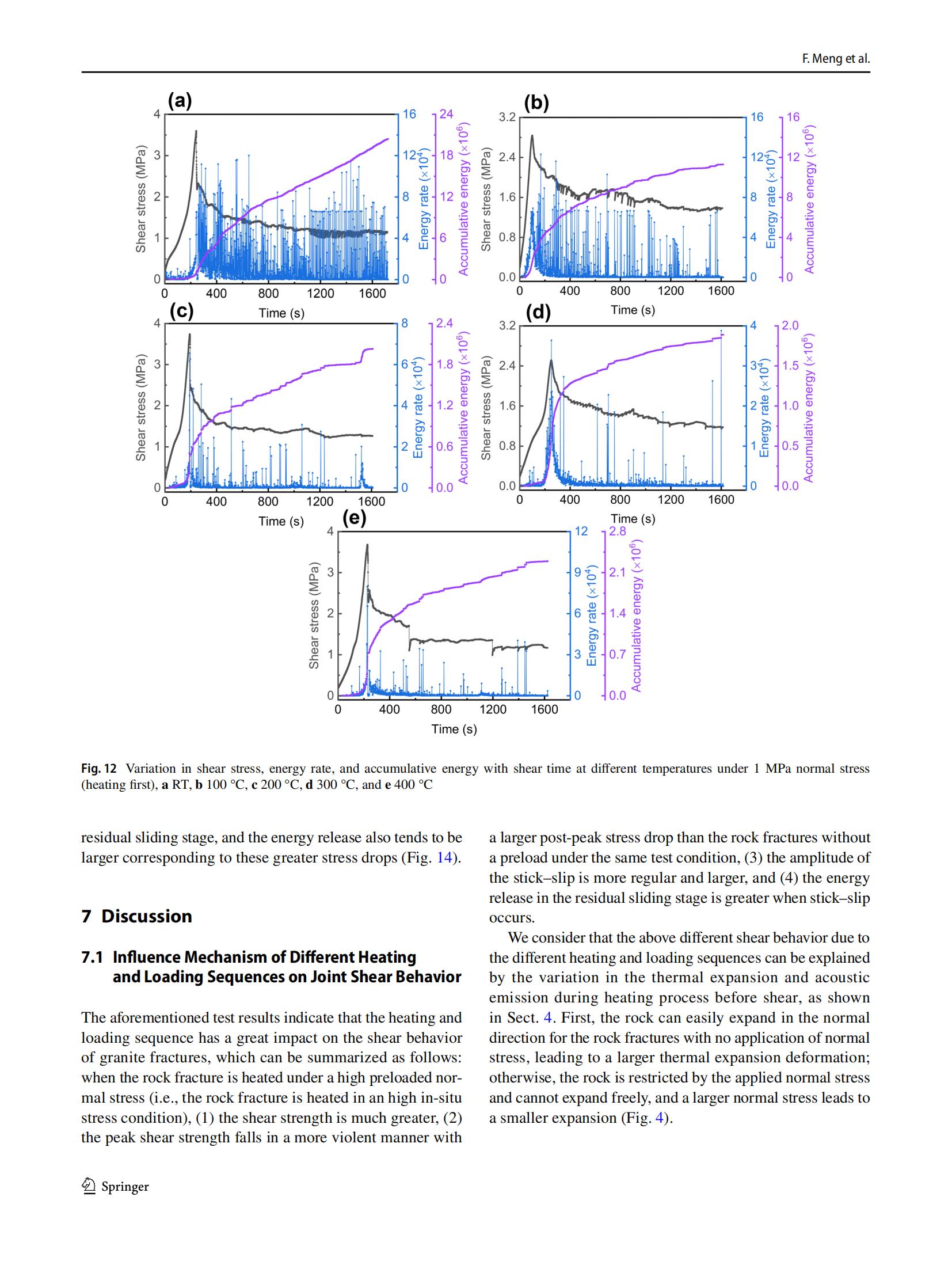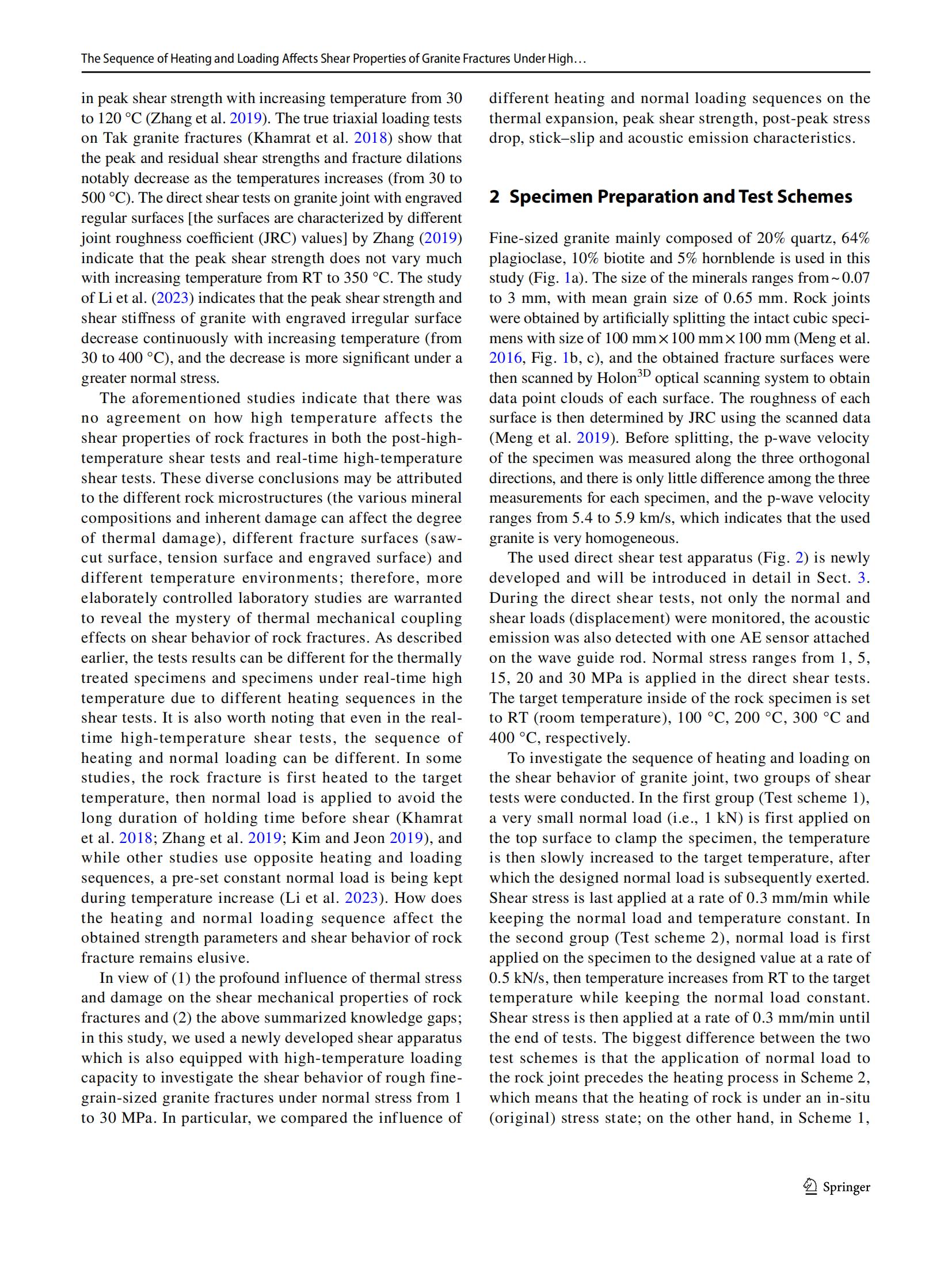 我公司联合青岛理工大学成功研制《岩石高温高压下剪切试验系统》,此次合作成果发表于《岩石力学与岩土工程》,该试验仪的试验结果显示,在高法向应力约束下加热的裂隙,其声发射活动更为活跃,但法向膨胀变形受到更强抑制;随着温度升高,裂隙剪切强度总体呈增长趋势,这种强化效应在高法向应力加热条件下尤为显著,但在极限温度(400℃)下出现强度劣化。加热导致的裂隙强度增强与粗糙体接触蠕变(具有时间-温度依赖性)密切相关,该过程增大了宏观吻合裂隙面的真实接触面积。加热与法向加载顺序会显著影响花岗岩裂隙的剪切特性:相较于先加热后加载的裂隙,先加载法向应力再加热的裂隙表现出更高的剪切强度、更显著的峰后应力降及更强烈的粘滑振幅。作为评估地震事件强度的关键指标,峰后应力降与粘滑应力降的幅值同动态滑移量及加载系统刚度密切相关。