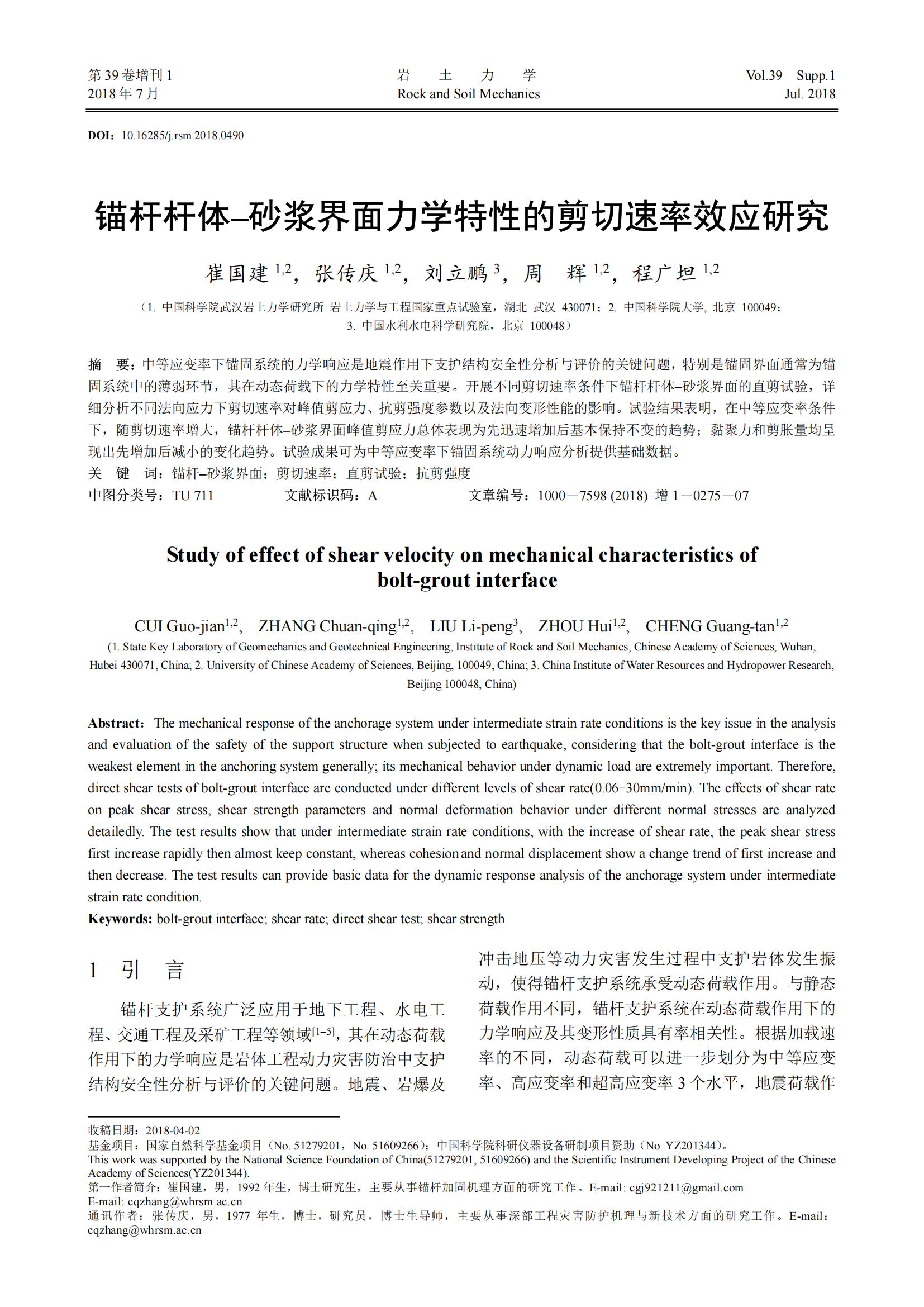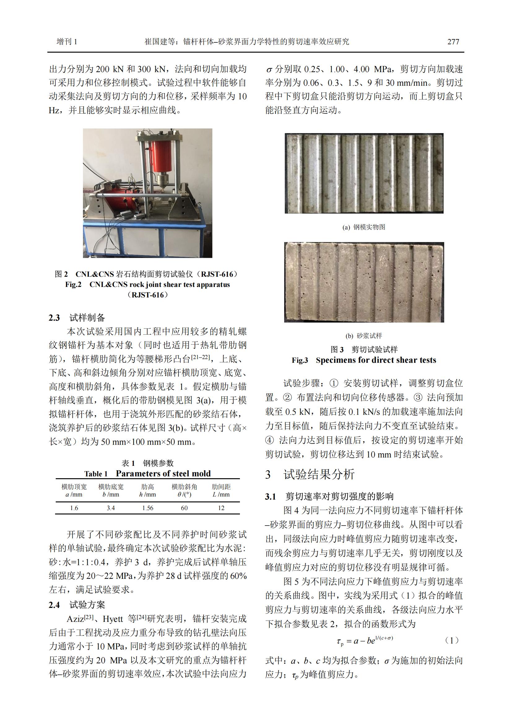 我公司联合中国科学院武汉岩土力学研究所成功研制《岩石结构面剪切试验仪》,此次合作成果发表于《岩土力学》第39卷增刊1,该试验仪的试验结果表明,在中等应变率条件下,随剪切速率增大,锚杆杆体–砂浆界面峰值剪应力总体表现为先迅速增加后基本保持不变的趋势;黏聚力和剪胀量均呈现出先增加后减小的变化趋势。试验成果可为中等应变率下锚固系统动力响应分析提供基础数据。